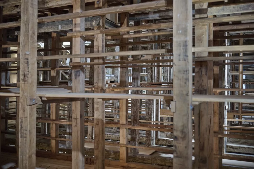 Enchevêtrement de panneaux de bois sous la scène de l’opéra Royal