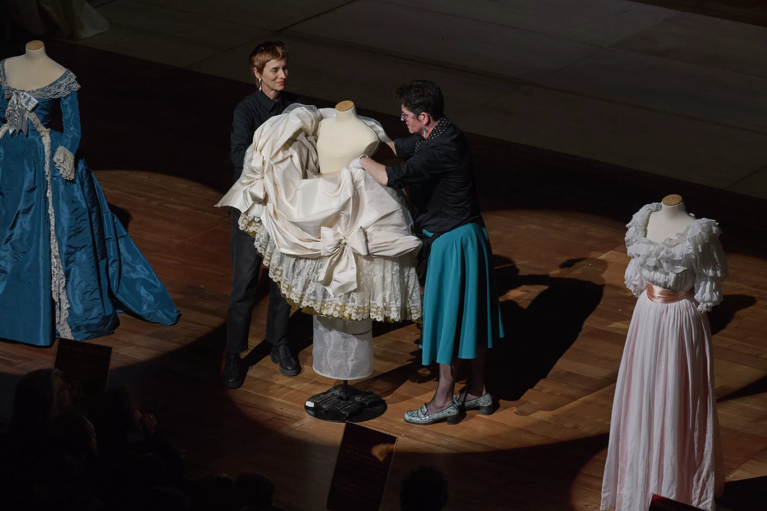 Modistes apprêtant une robe