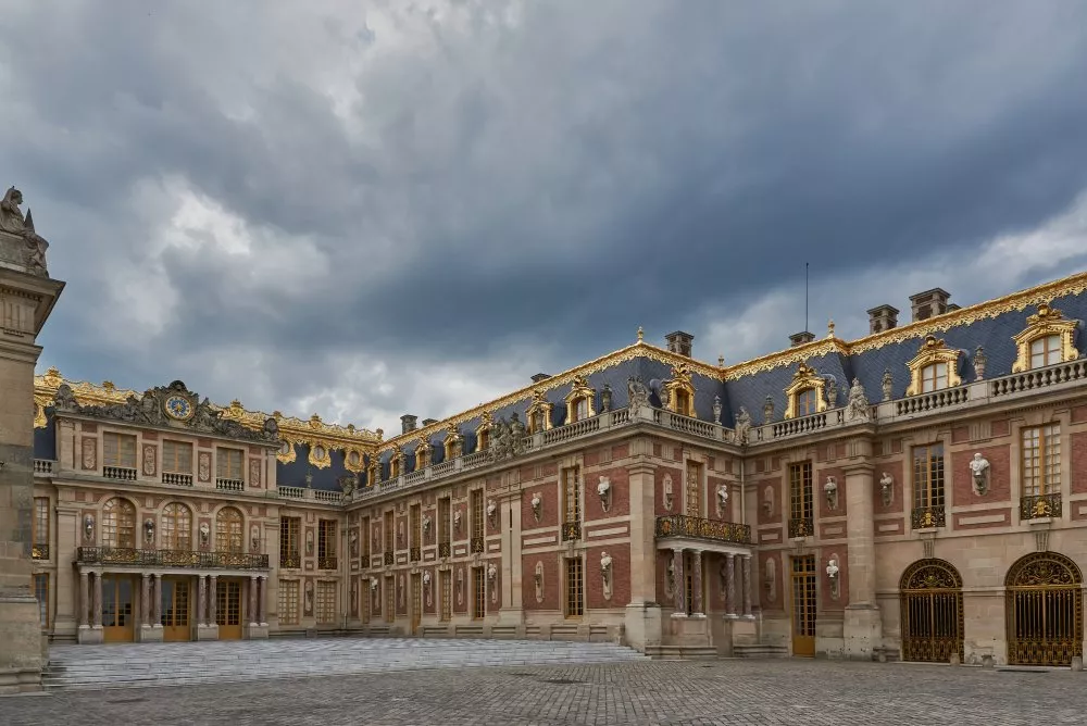 Façade du petit château, cour de marbre et vestibule de l’escalier de la reine